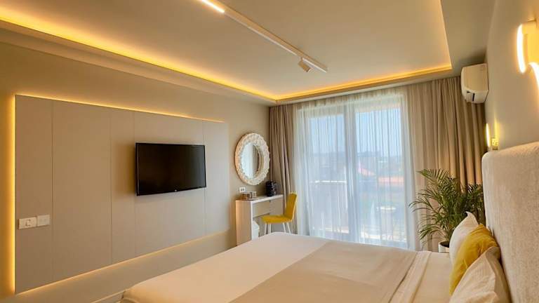 Die Zimmer im Mamaia Moments Villa, Mamaia Nord sind geräumig und bieten einen komfortablen Sitzbereich mit einem Flachbild-TV. Das private Badezimmer ist gut ausgestattet mit kostenfreien Pflegeprodukten, einem Haartrockner und einer Dusche. Genießen Sie den Gartenblick und entspannen Sie sich in Ihrem gemütlichen Zimmer. WLAN ist in allen Bereichen des Bed & Breakfasts kostenlos verfügbar.