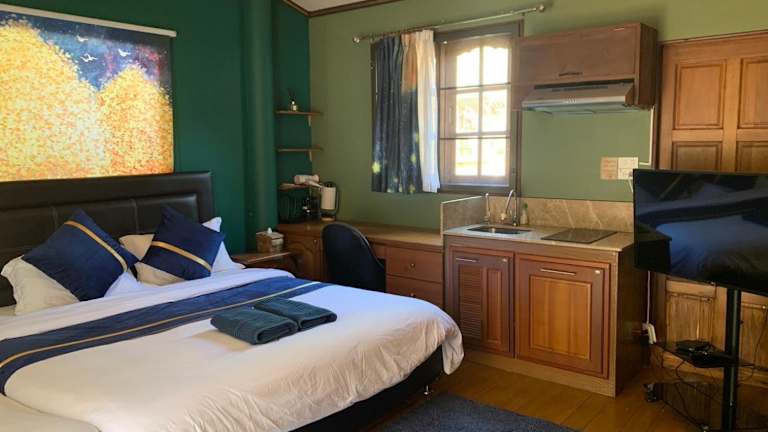 Das Cozy Apartment R19 山水田野间的公寓型住宅配备露台和泳池 liegt in Ban Huai Som und ist nur 18 km von der Mae Jo University, dem Queen Sirikit Botanic Garden und dem Chiang Mai 700th Anniversary Stadium entfernt. In der Umgebung gibt es viele Möglichkeiten für Ausflüge und Erkundungen. Das Chiang Mai International Convention and Exhibition Centre ist 20 km entfernt und das Chang Puak Gate erreichen Sie nach 23 km. Der nächstgelegene Flughafen ist der internationale Flughafen Chiang Mai, der 27 km vom Hotel entfernt liegt.