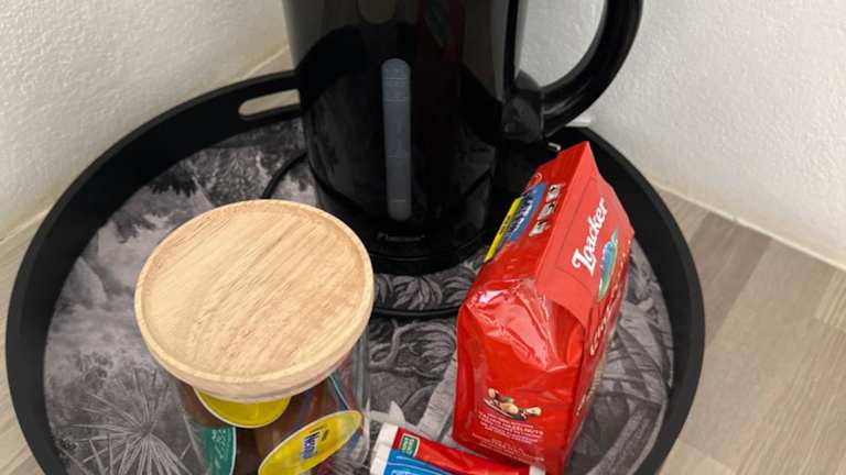 Die Ferienwohnung besteht aus 1 Schlafzimmer und einem Wohnzimmer. Zur Ausstattung gehören eine voll ausgestattete Küche mit Kühlschrank und Kaffeemaschine sowie ein Badezimmer mit Dusche. Handtücher und Bettwäsche werden bereitgestellt. Zusätzlich stehen schallisolierte Zimmer zur Verfügung.