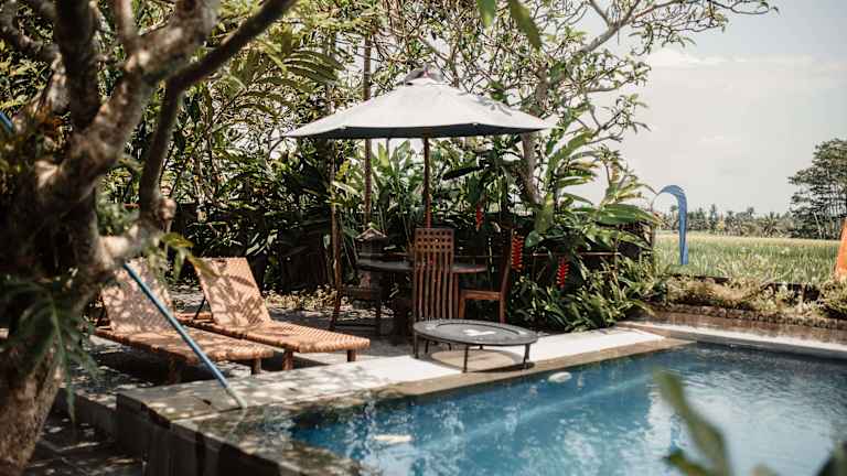 • Die ruhige Lage direkt an Reisfeldern ist ideal zum Entspannen.