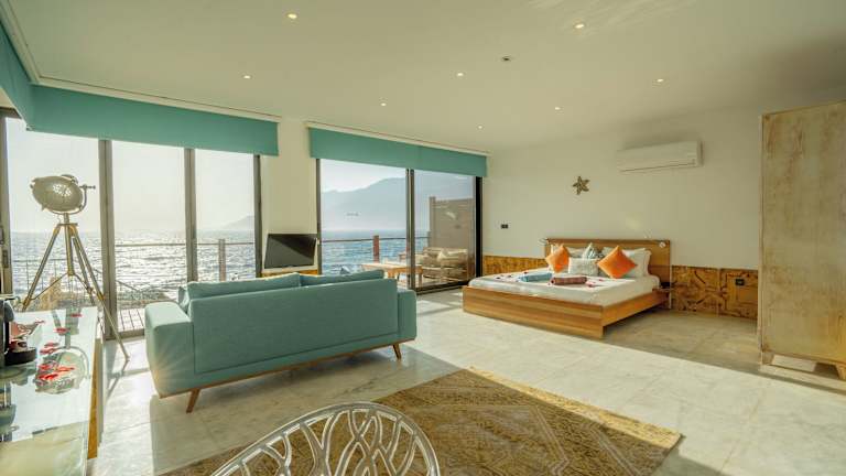 Das Mandalina Suites Luxury Boutique Hotel in Kas bietet Ihnen einen luxuriösen Aufenthalt mit Blick auf das Meer und einen Außenpool. Genießen Sie den Komfort der geräumigen Suiten, die über einen Flachbild-Kabel-TV und ein eigenes Bad verfügen. WLAN und Privatparkplätze stehen Ihnen kostenlos zur Verfügung. Entspannen Sie am Strand, nutzen Sie den kostenfreien Fahrradverleih oder erkunden Sie die Umgebung beim Skifahren, Schnorcheln und Tauchen. Das Hotel bietet auch einen Zimmerservice und eine Autovermietung. Besuchen Sie den nahegelegenen Kas Bazaar oder das Hellenistic Theatre für kulturelle Erlebnisse.