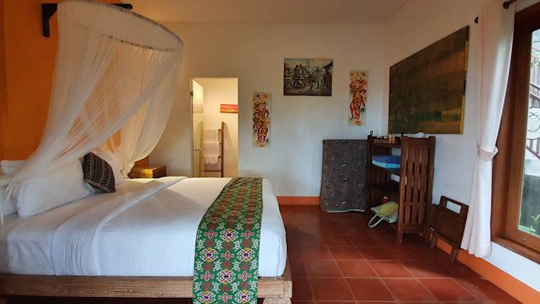 Die Zimmer im Manggis Garden Dive Resort sind komfortabel und bieten ein voll ausgestattetes eigenes Bad mit Dusche. Kostenfreie Pflegeprodukte stehen für die Gäste bereit.