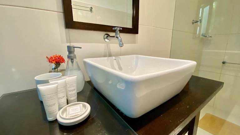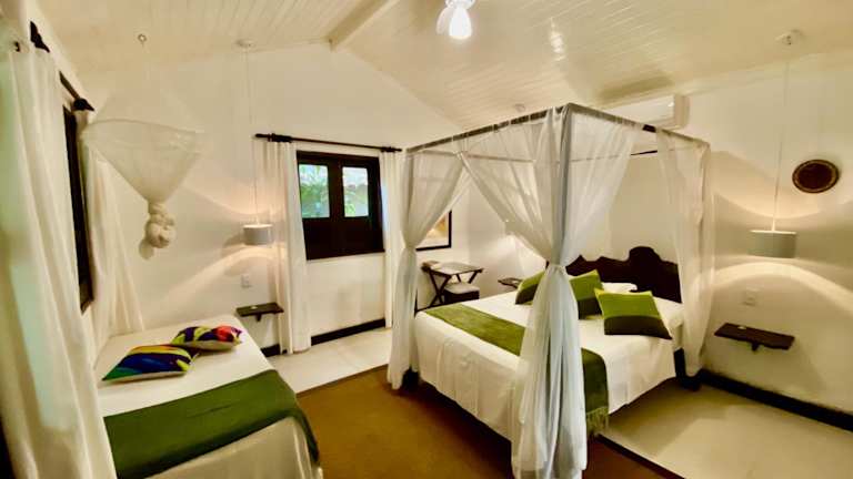 Die Unterkünfte im Mangueira Boutique Hotel Moreré verfügen über einen Essbereich, ein eigenes Bad mit Warmwasser, einen Balkon mit Hängematten sowie klimatisierte Räume. Es ist eine tägliche Reinigung der Zimmer gewährleistet.