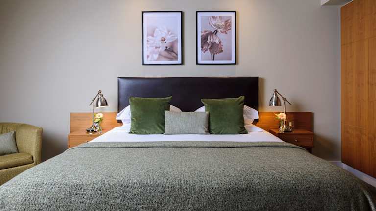 Die Zimmer im Manor West Hotel sind stilvoll und modern eingerichtet und bieten viel Komfort für einen angenehmen Aufenthalt. Die Innenausstattung ist von der natürlichen Farbpalette der umliegenden Landschaft inspiriert, was eine entspannte Atmosphäre schafft. Die Suiten verfügen über einen Balkon mit Panoramablick auf die beeindruckende Bergkette Slieve Mish. Alle Zimmer und Suiten sind mit modernen Annehmlichkeiten ausgestattet und bieten viel Tageslicht.