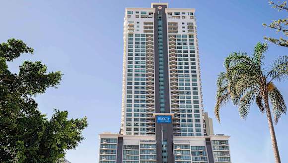 Das Mantra Crown Towers ist ein ideales Hotel für einen entspannten Urlaub in Surfers Paradise. Die Apartments zur Selbstverpflegung bieten Komfort und Privatsphäre mit einem eigenen Balkon. Das Highlight für Familien ist der Lagunenpool mit einem Piratenschiff, einer Wasserrutsche und einem Sandstrand. Zusätzlich gibt es einen beheizten Innenpool, einen Whirlpool, eine Sauna und ein Fitnesscenter. Das thailändische Restaurant Chiangmai verwöhnt die Gäste mit authentischer Küche und einem traditionellen Ambiente. Die Lage des Hotels ist perfekt, nur wenige Gehminuten vom Strand und den Geschäften entfernt.