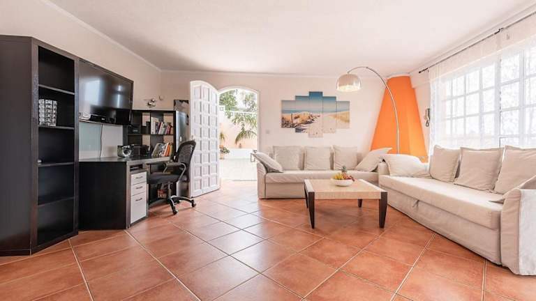 Das Ferienhaus besteht aus drei Schlafzimmern und einem Wohnzimmer mit Flachbild-TV. Die gut ausgestattete Küche verfügt über Kühlschrank und Geschirrspüler. Zudem sind zwei Badezimmer mit Dusche vorhanden. Handtücher und Bettwäsche werden bereitgestellt.