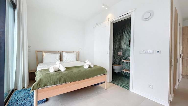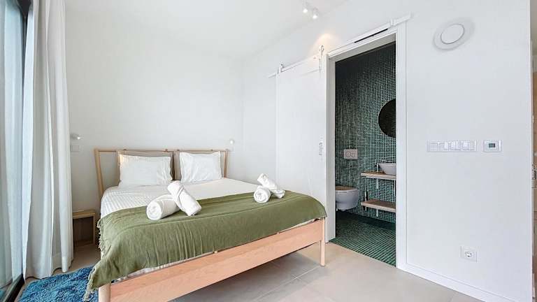 Die klimatisierte Ferienwohnung umfasst 1 Schlafzimmer, ein Wohnzimmer, eine vollständig ausgestattete Küche mit Kühlschrank und Kaffeemaschine sowie 1 Badezimmer mit Bidet und Dusche. Handtücher und Bettwäsche werden bereitgestellt.