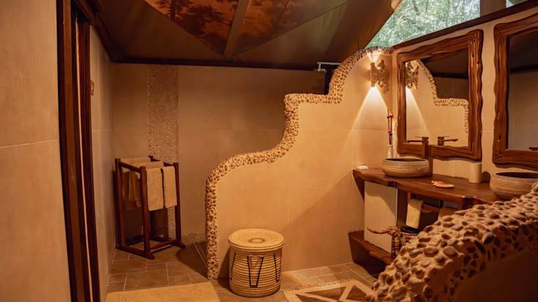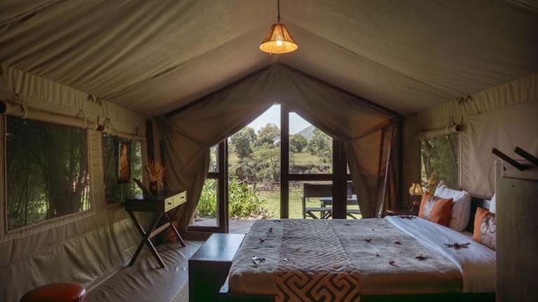 Die Zelte im Mara River Camp bieten nicht nur eine atemberaubende Aussicht auf den Fluss Mara, sondern auch einen gemütlichen Sitzbereich und ein eigenes Bad mit Dusche. Jedes Zelt verfügt zudem über einen Patio, auf dem Sie die Natur in vollen Zügen genießen können. Die Unterkunft bietet Ihnen Komfort und Erholung inmitten der Wildnis.
