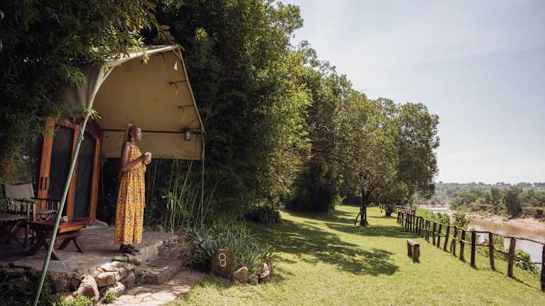 Das Mara River Camp befindet sich an der nordwestlichen Grenze des Naturschutzgebiets Masai Mara. Die Lage direkt am Fluss Mara bietet eine spektakuläre Aussicht und eine einzigartige Tierwelt. In der Umgebung können Sie aufregende Pirschfahrten unternehmen und die Schönheit der Natur erleben. Der Flug- und Landeplatz Kichwa Tembo Airstrip ist die nächste Landebahn für den Transfer zum Camp.