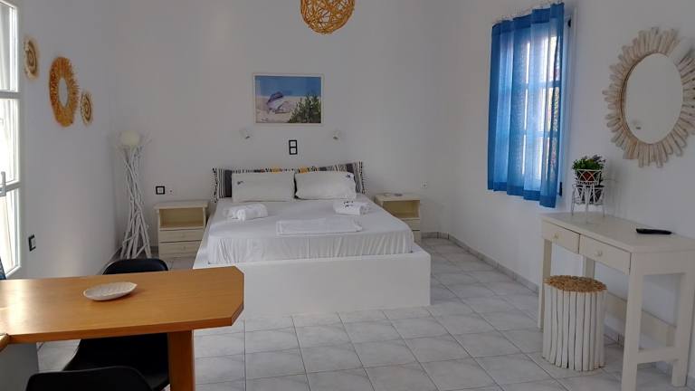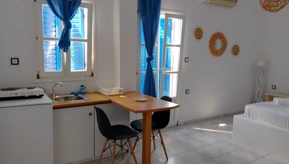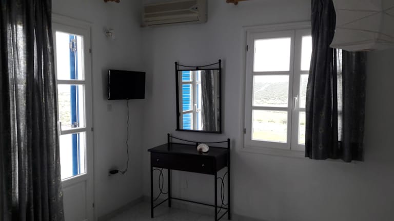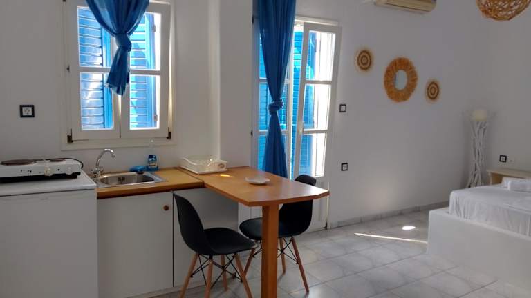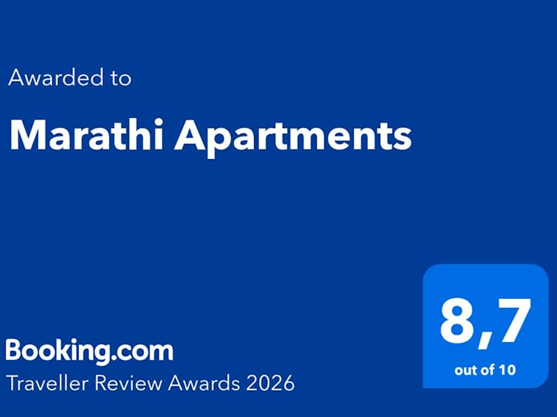 Marathi Apartments bietet kostenloses WLAN sowie einen eigenen Parkplatz. Die klimatisierten Wohneinheiten sind mit Fliesenböden ausgestattet und verfügen über ein eigenes Badezimmer, einen TV, einen Kleiderschrank, eine Küchenzeile sowie eine Terrasse. Alle Unterkünfte bieten Meerblick und einen Balkon mit Blick auf die Berge. Der Check-in ist ab 14:30 Uhr bis 23:00 Uhr möglich, während der Check-out zwischen 09:00 Uhr und 12:00 Uhr erfolgt.