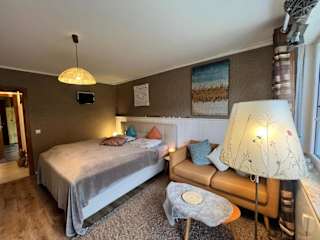 Die Ferienwohnung verfügt über 1 Schlafzimmer und 1 Badezimmer. Zur Ausstattung gehören Bettwäsche, Handtücher, ein Flachbild-TV mit Satellitenkanälen, ein Essbereich sowie eine voll ausgestattete Küche. Zudem bietet die Unterkunft einen Balkon mit Blick auf den Garten.