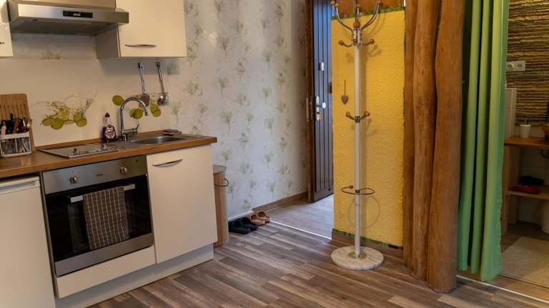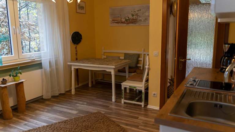 Marburg Apartment pfiffige Luisa liegt in einer ruhigen Waldrandlage und bietet einen Balkon sowie einen Wintergarten.