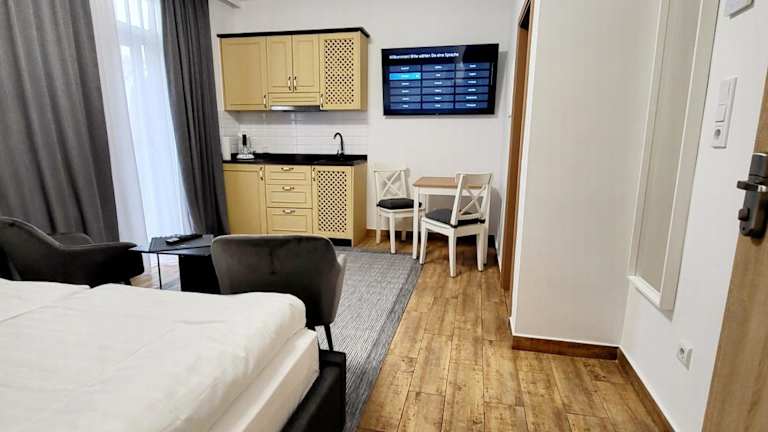 Die Apartments in den Marcel Apartments Leipzig bieten alles, was man für einen angenehmen Aufenthalt benötigt. Jedes Apartment verfügt über eine Terrasse oder einen Balkon, auf dem die Gäste die frische Luft und die Aussicht genießen können. Die Zimmer sind modern eingerichtet und mit einem Flachbild-TV ausgestattet. Kostenloses WLAN ist in allen Zimmern verfügbar. Die Küche ist gut ausgestattet mit einem Kühlschrank, einem Kochfeld, einem Toaster und einer Kaffeemaschine, so dass die Gäste ihre eigenen Mahlzeiten zubereiten können.