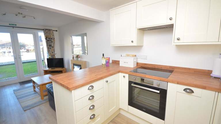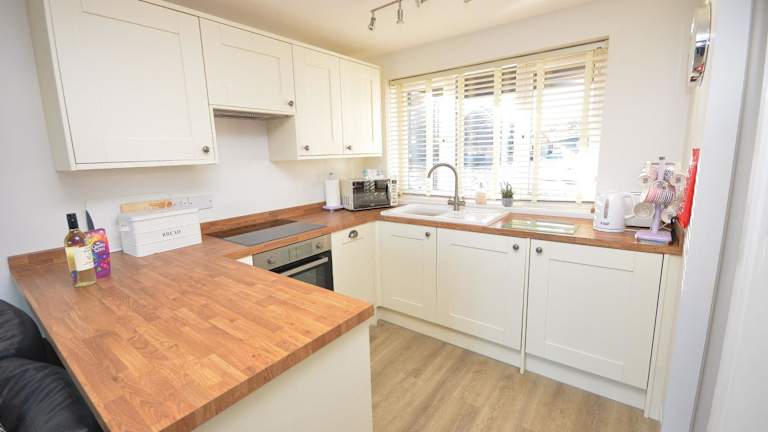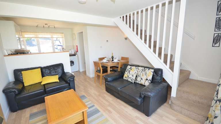 Das Ferienhaus umfasst 2 Schlafzimmer sowie ein Wohnzimmer und ist mit einer voll ausgestatteten Küche ausgestattet, die einen Kühlschrank und einen Ofen enthält. Handtücher und Bettwäsche werden bereitgestellt.