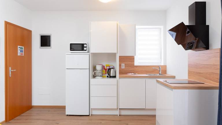 Die Zimmer sind mit einem eigenen Badezimmer ausgestattet. Einige Wohneinheiten verfügen über eine Küchenzeile, die mit einem Ofen, einer Mikrowelle und einer Herdplatte ausgestattet ist, sodass auch die Zubereitung einfacher Mahlzeiten möglich ist.