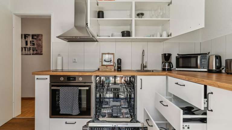 Die Apartments verfügen über eine voll ausgestattete Küche, die unter anderem mit einem Kühlschrank, Geschirrspüler, Ofen, Mikrowelle, Kaffeemaschine und Wasserkocher ausgestattet ist. Es besteht die Möglichkeit, Essenslieferungen in die Unterkunft zu erhalten.
