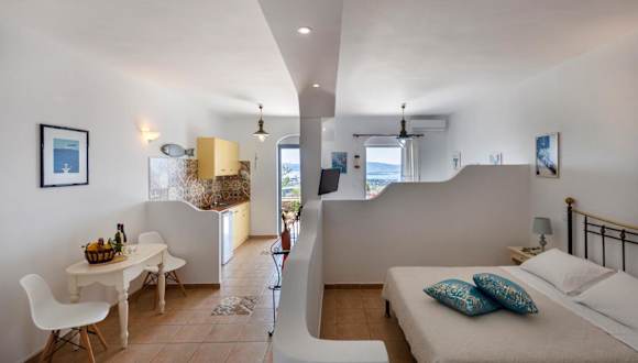 Die Margarita Countryside Studios sind klimatisiert und traditionell eingerichtet. Jedes Studio verfügt über eine Küchenzeile mit Kochplatten, einem Minikühlschrank, einer Kaffeemaschine und einem Toaster. Es gibt auch einen Esstisch. Zur Ausstattung gehören ein Flachbild-Sat-TV, kostenfreie Pflegeprodukte und ein Haartrockner. Von der großen Terrasse aus können Sie den Blick auf die Ägäis genießen.