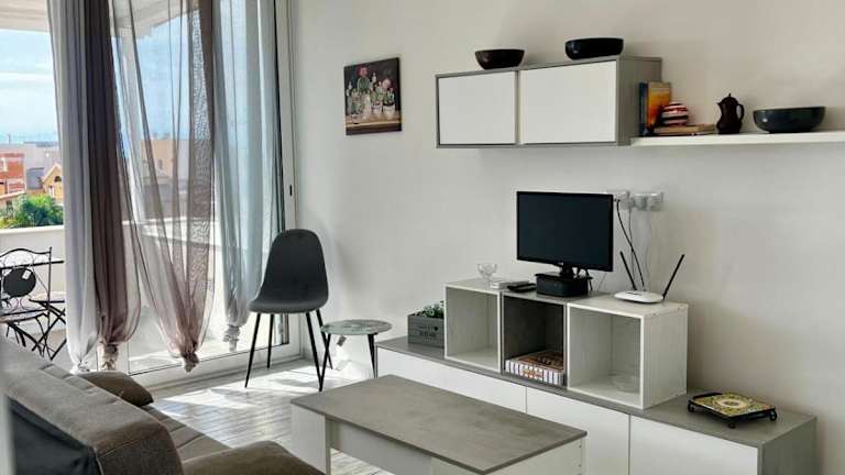 Mari Sol ist eine Unterkunft, die über einen Balkon und Meerblick verfügt. Sie bietet eine Terrasse, eine Bar und kostenloses WLAN in sämtlichen Bereichen. Diese Ferienwohnung ist klimatisiert und bietet ein Wohnzimmer sowie zwei Schlafzimmer.