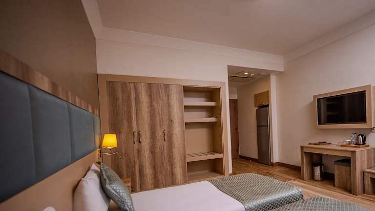Die Zimmer im mari suites hotel sind modern und komfortabel eingerichtet. Sie verfügen über einen Flachbild-Sat-TV und ein eigenes Badezimmer. Ein Wasserkocher steht ebenfalls zur Verfügung. Einige Zimmer verfügen auch über eine Küchenzeile mit einem Kühlschrank. Alle Zimmer sind klimatisiert und bieten einen Schreibtisch für Ihre Bequemlichkeit.