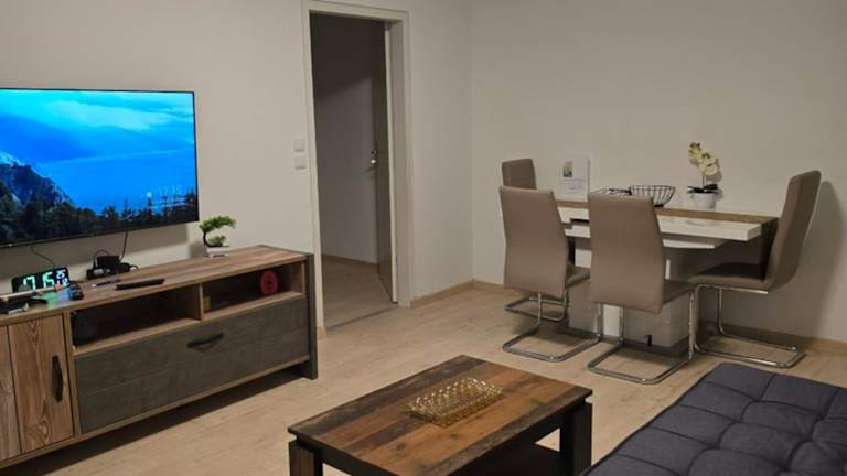 Die Ferienwohnung umfasst ein Schlafzimmer und ein Wohnzimmer, ausgestattet mit einem Flachbild-TV. Die gut ausgestattete Küche verfügt über einen Kühlschrank und einen Geschirrspüler. Ein Badezimmer mit Dusche ist vorhanden. Handtücher und Bettwäsche werden in der Unterkunft bereitgestellt.