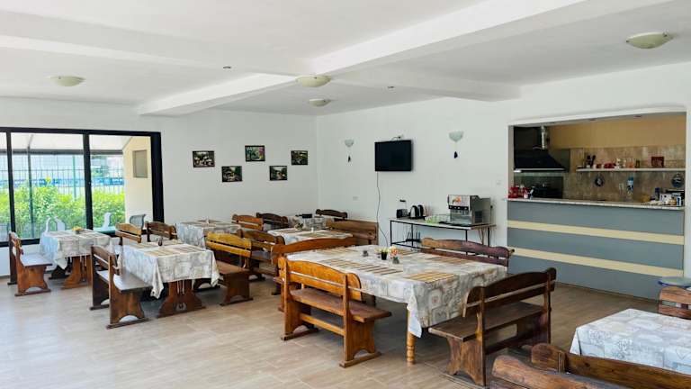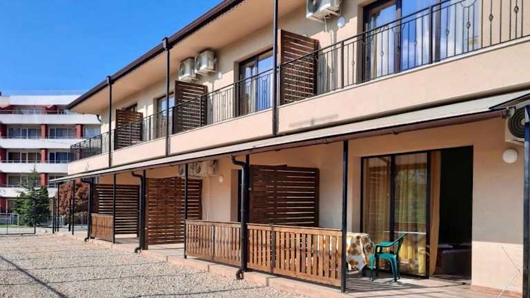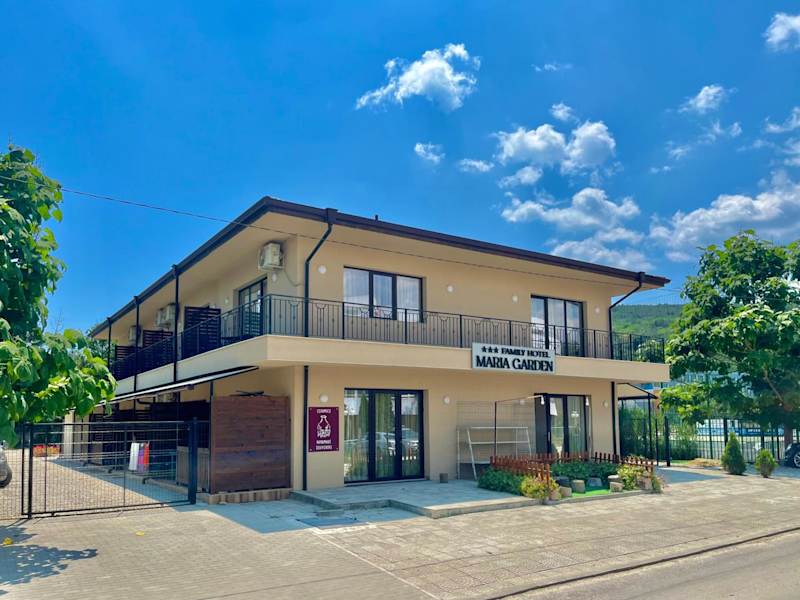 Das Hotel Maria Garden in Kranevo bietet seinen Gästen eine komfortable Unterkunft in Strandnähe. Mit kostenfreiem WLAN, einem eigenen Balkon und einer Vielzahl von Annehmlichkeiten in jedem Zimmer ist das Hotel eine gute Wahl für einen erholsamen Aufenthalt. Zusätzlich stehen kostenfreie Privatparkplätze, ein Garten, eine Terrasse und eine Bar zur Verfügung. Die freundlichen Mitarbeiter an der Rezeption sprechen Bulgarisch und Englisch und sind gerne bereit, bei Fragen oder Anliegen behilflich zu sein.