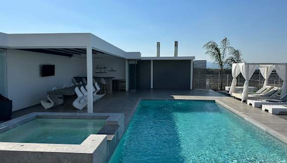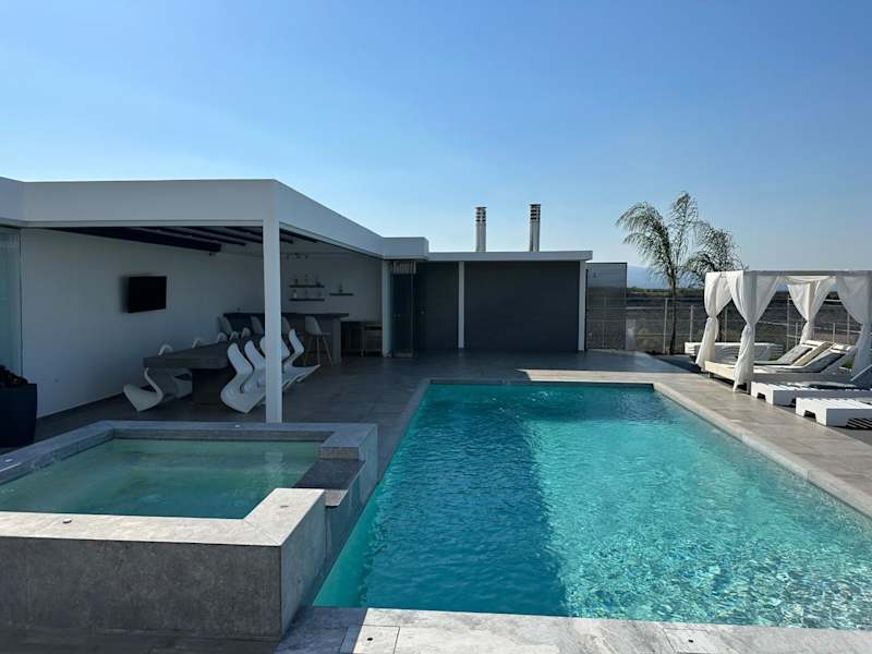 Die Villa bietet Platz in sechs Schlafzimmern und einem Wohnzimmer. Zudem stehen fünf Badezimmer mit Dusche und Whirlpool zur Verfügung. Handtücher und Bettwäsche sind ebenfalls Teil der Ausstattung. Die Villa ist klimatisiert.