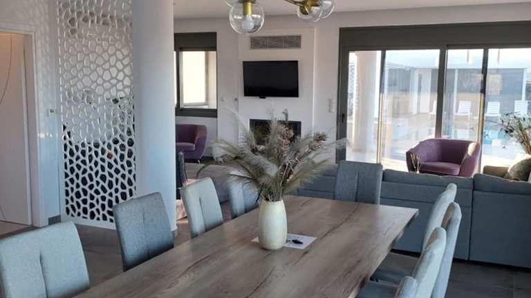 Die Maria Luxury Villa ist eine voll ausgestattete Unterkunft mit einem Außenpool, einem Garten und einer Terrasse. Sie bietet Übernachtungsmöglichkeiten mit kostenlosem WLAN und Meerblick. Zur Verfügung stehen eine Bar sowie ein kostenloser Privatparkplatz.