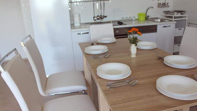 Die Ferienwohnung ist klimatisiert und umfasst zwei Schlafzimmer, ein Wohnzimmer sowie eine komplett ausgestattete Küche, die mit einem Kühlschrank und einer Kaffeemaschine ausgestattet ist. Das Badezimmer verfügt über ein Bidet und eine Dusche. Handtücher und Bettwäsche werden bereitgestellt.