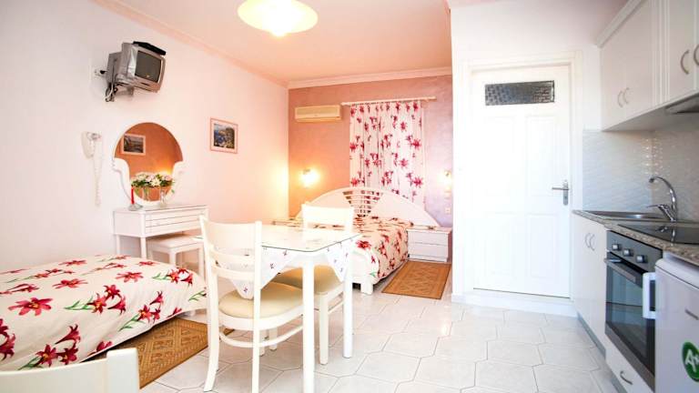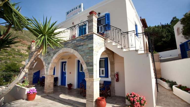 Die Maria's Studios bieten geräumige und komfortable Studios, die alle mit einer Küchenzeile ausgestattet sind. In der Küchenzeile finden Sie alles, was Sie benötigen, um Ihre eigenen Mahlzeiten zuzubereiten, einschließlich Kochgelegenheiten, Kühlschrank und Wasserkocher. Jedes Studio verfügt auch über einen Balkon mit Blick auf die Ägäis, auf dem Sie die atemberaubende Aussicht genießen können. Zur weiteren Ausstattung gehören ein TV und ein eigenes Badezimmer mit Haartrockner. Kostenloses WLAN ist in allen Studios verfügbar.