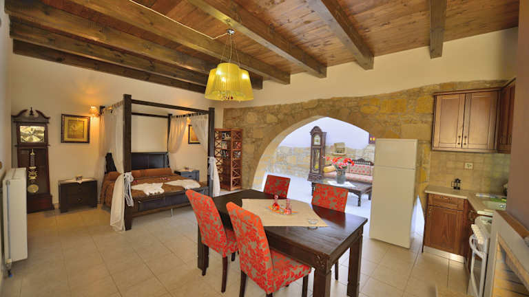 Die klimatisierten Studios und Villen im Maria's Villas sind geräumig und bieten eine gut ausgestattete Küche mit Herd und Kühlschrank. Einige Unterkünfte erstrecken sich über zwei Ebenen oder verfügen über eine Waschmaschine. Zur Ausstattung gehören auch ein Kamin, ein Plasma-Sat-TV sowie ein Sitz- und Essbereich. Von der Terrasse oder dem Balkon aus haben Sie einen wunderschönen Blick auf den Garten, die Berge oder die Olivenhaine.