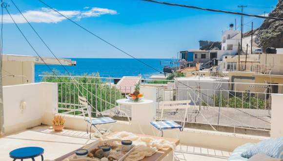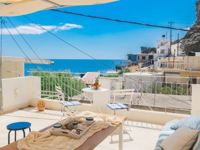 Maridaki beach house ist eine klimatisierte Unterkunft mit Privatparkplatz, die einen direkten Zugang zu einem Balkon mit Blick auf die Berge bietet. Zudem verfügt das Ferienhaus über eine Terrasse mit Meerblick.