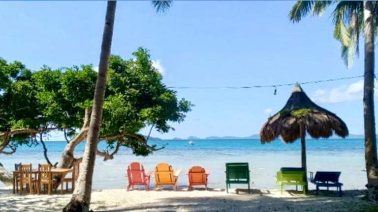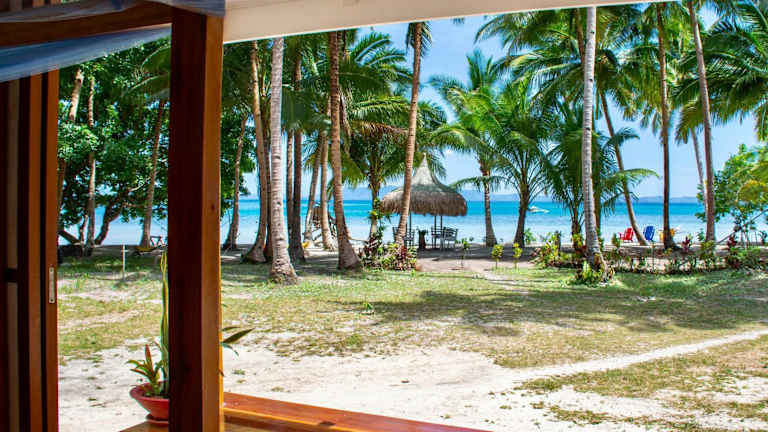 Das Mariejoy Haven Beach Resort befindet sich am Strand Small Naonao in Port Barton (San Vicente). Die Unterkunft ist nur mit einem gemieteten Privatboot oder über eine unbefestigte Straße erreichbar, die eine 20-minütige Fahrt vom Strand Port Barton entfernt ist.