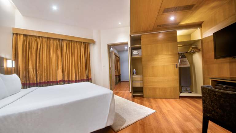 Die Zimmer sind mit modernem Komfort ausgestattet und bieten Annehmlichkeiten wie Klimaanlage, Ventilator, Kingsizebett, Sofa, Safe, Minibar und Schreibtisch. Ein Kühlschrank sowie eine Tee-/Kaffeemaschine sind ebenfalls vorhanden. Die Badezimmer verfügen über eine Dusche, eine Badewanne und ein Bidet, und bieten den Gästen zauberhafte Kosmetikartikel sowie eine Auswahl an Handtüchern. Einige Zimmer sind rollstuhlgerecht, und es gibt spezielle Familien- und Nichtraucherzimmer.