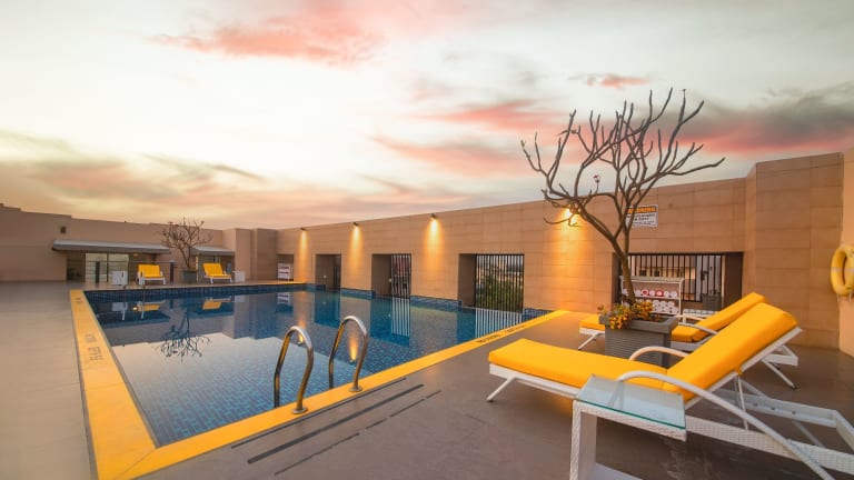 Das Marigold Hotel ist eine elegante Unterkunft mit 181 Zimmern und umfassenden Annehmlichkeiten für einen angenehmen Aufenthalt. Zu den Einrichtungen zählen ein Aufzug, WLAN in den öffentlichen Bereichen sowie eine Vielzahl von Dienstleistungen wie Gepäckaufbewahrung, Zimmerservice und ein Tourdesk. Ein Gartenbereich bietet zusätzliche Erholungsmöglichkeiten. Zudem stehen ein Business-Center und Konferenzräume zur Verfügung, um geschäftlichen Bedürfnissen gerecht zu werden. Sicherheit wird durch einen 24h-Sicherheitsdienst gewährleistet. Parkmöglichkeiten sind vorhanden, und das Hotel bietet einen Shuttlebus.