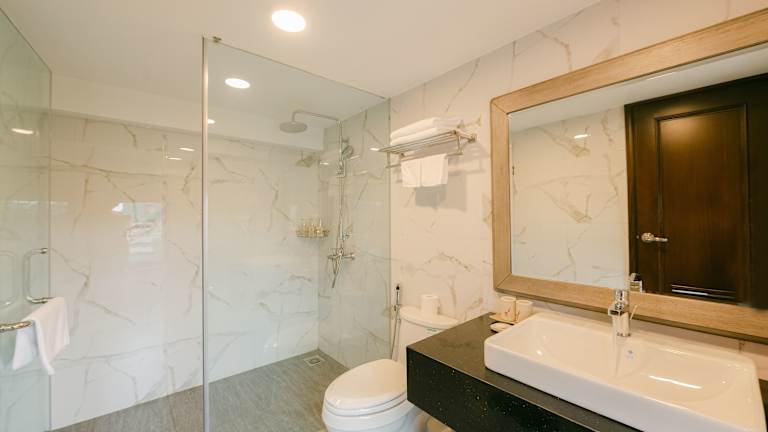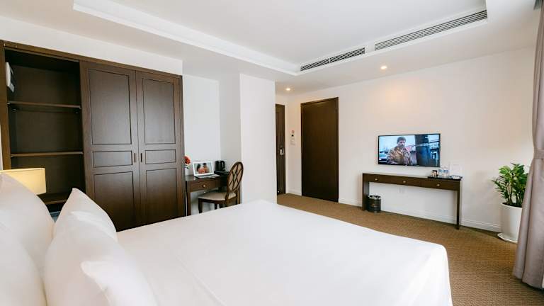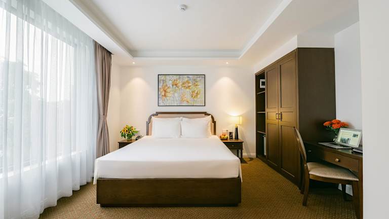 Die klimatisierten Zimmer im Marigold Hotel Hanoi sind komfortabel eingerichtet und verfügen über Annehmlichkeiten wie einen Flachbild-Sat-TV, einen Kühlschrank, einen Wasserkocher und kostenfreie Pflegeprodukte. Jedes Zimmer hat ein eigenes Badezimmer mit einer Dusche, einem Haartrockner und Hausschuhen. Ein Schreibtisch und ein Kleiderschrank sind ebenfalls vorhanden.