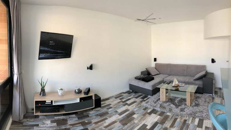 Die Ferienwohnung verfügt über ein Schlafzimmer, ein Badezimmer mit einer Dusche und einem Whirlpool sowie eine Küche, die mit einem Kühlschrank, Geschirrspüler und Ofen ausgestattet ist. Das Wohnzimmer bietet einen Sitzbereich und einen Essbereich. Zur Ausstattung gehören zudem ein Flachbild-TV mit Satellitenkanälen, ein Blu-ray-Player, eine Spielekonsole, ein iPad und ein CD-Player. Außerdem steht ein Balkon zur Verfügung.