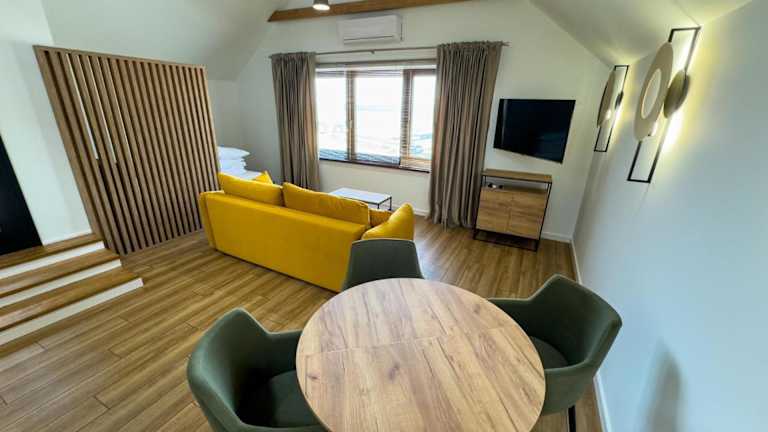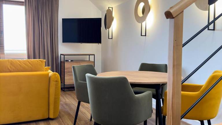 Das Marina Śniardwy Resort liegt in Nowe Guty und ist ca. 27 km vom Golfplatz Talki entfernt. Die Umgebung bietet eine wunderschöne Naturkulisse mit Seen und Wäldern, ideal für Aktivitäten wie Wandern und Angeln. Der nächstgelegene Flughafen ist der Flughafen Olsztyn-Mazury, der etwa 93 km vom Resort entfernt liegt.