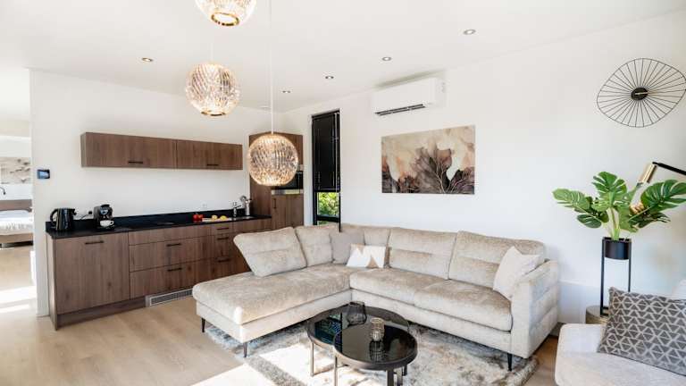 Alle Wohneinheiten sind mit einer Veranda oder einem Patio ausgestattet. Die Zimmer verfügen über eine Küche mit einem Kühlschrank sowie einem Geschirrspüler und ein eigenes Badezimmer. In einigen Unterkünften gibt es zusätzlich eine Terrasse, einen Sitzbereich mit einem Flachbild-TV und eine Klimaanlage.