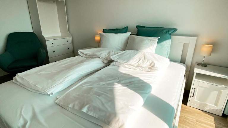 Die Ferienwohnung besteht aus einem Schlafzimmer, einem Wohnzimmer und einer voll ausgestatteten Küche mit Kühlschrank und Kaffeemaschine. Zudem ist ein Badezimmer mit Dusche vorhanden. Handtücher und Bettwäsche werden bereitgestellt. Die Unterkunft ist klimatisiert und bietet Nichtraucherzimmer.