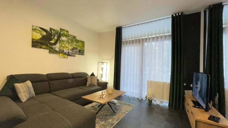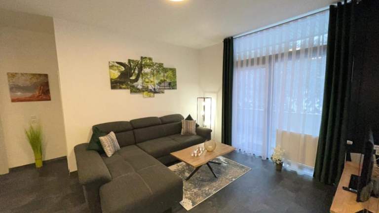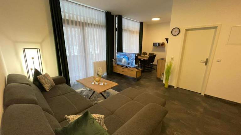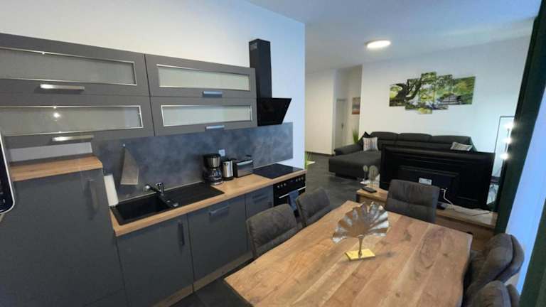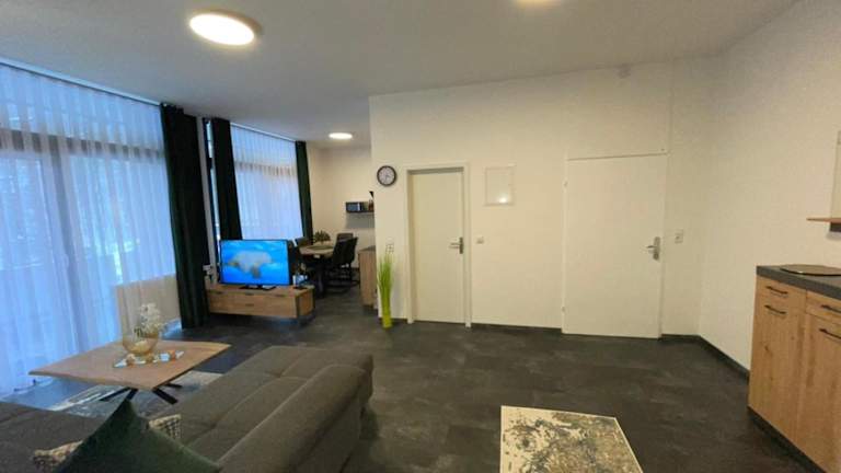 Die Ferienwohnung besteht aus zwei Schlafzimmern, einem Wohnzimmer und einer voll ausgestatteten Küche mit Kühlschrank und Wasserkocher. Ein Badezimmer mit Dusche und Haartrockner ist ebenfalls vorhanden. Handtücher und Bettwäsche werden bereitgestellt.