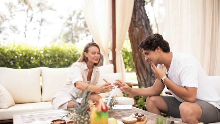 Das Hotel bietet ein kostenloses Frühstücksbuffet, das täglich von 08:00 Uhr bis 10:30 Uhr serviert wird. Am Abend können Sie im Hotelrestaurant ein köstliches Abendessen genießen, das auf Vorbestellung angeboten wird. Es gibt auch eine Strandbar, an der Sie erfrischende Getränke und Snacks genießen können.