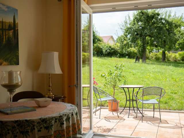 Marita's Gartenparadies ist eine Ferienwohnung im Erdgeschoss mit einem Schlafzimmer und einem Wohnzimmer. Die Unterkunft verfügt über eine Terrasse mit Gartenblick und wird von einem privaten Gastgeber geführt. Der Check-in ist zwischen 14:00 und 20:00 Uhr möglich, während der Check-out bis 11:00 Uhr stattfinden kann. In dieser Unterkunft sind keine Junggesellen- oder ähnliche Feiern gestattet. Das Mindestalter für den Check-in und für Gäste beträgt 18 Jahre, und Haustiere sind nicht erlaubt.