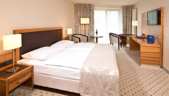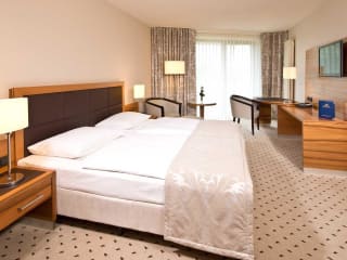 Die beste Alternative zu Ihrem Aufenthalt in der Businessmetropole Frankfurt bietet das nahegelegene Bad Homburg, wo Sie ruhig zwischen Fußgängerzone und Kurpark wohnen. Sie haben die Wahl zwischen 148 modernen und edel renovierten Zimmern, die alle mit Flachbildfernseher, kostenfreiem WLAN, Minibar, Safe und Klimaanlage ausgestattet sind. Starten Sie den Tag sportlich im Park und genießen Sie abends die unmittelbare Nähe zu Shops und Sehenswürdigkeiten in Bad Homburg. Auf Wunsch stellen wir Ihnen ein Babybett, für Allergiker geeignete Bettwäsche oder ein Bügelbrett zur Verfügung. Sollten Sie ein behindertengerechtes Zimmer (Studio Zimmer), Allergikerzimmer mit Laminatboden oder überlange Betten (2,10 m) für Ihren Aufenthalt im Maritim Hotel Bad Homburg benötigen, bitten wir Sie uns vor Ihrer Buchung Bescheid zu geben. Sollten Sie ein behindertengerechtes Zimmer benötigen, sagen Sie uns bitte vor Ihrer Anreise Bescheid.