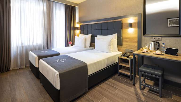 Das Marius Hotel bietet klimatisierte Zimmer, die mit modernen Annehmlichkeiten ausgestattet sind, um Ihnen einen angenehmen Aufenthalt zu ermöglichen. Jedes Zimmer verfügt über einen Schreibtisch, einen Wasserkocher, einen Kühlschrank, eine Minibar, einen Safe, einen Flachbild-TV und ein eigenes Badezimmer mit Dusche. Die Zimmer sind gemütlich eingerichtet und bieten Ihnen einen komfortablen Rückzugsort nach einem erlebnisreichen Tag in Istanbul. Bettwäsche und Handtücher werden gestellt.