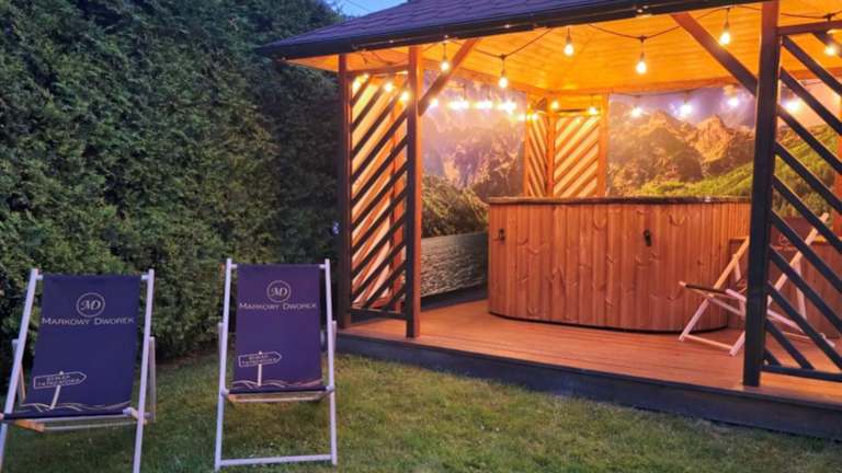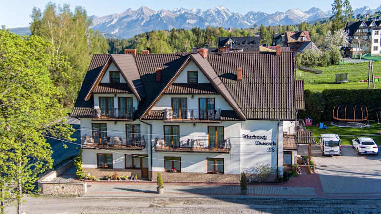 Das Hotel Markowy Dworek in Białka Tatrzańska bietet elegante Unterkünfte und kostenfreie Parkplätze. Die Lage am Fuße der Tatra und in der Nähe des Flusses Białka macht es zu einem idealen Ausgangspunkt für Outdoor-Aktivitäten. Die Zimmer sind stilvoll eingerichtet und bieten Annehmlichkeiten wie Sat-TV und kostenloses WLAN. Genießen Sie ein köstliches Frühstück im gemütlichen Speiseraum oder grillen Sie im Garten. Das Hotel verfügt auch über Einrichtungen wie ein Spielzimmer für Kinder und einen Skiraum. In der Nähe finden Sie viele Skilifte und die slowakische Grenze ist nur 2 km entfernt.