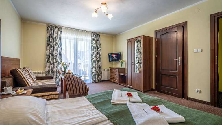 Die Zimmer im Hotel Markowy Dworek sind elegant und stilvoll eingerichtet. Die Farben Braun und Beige schaffen eine warme und einladende Atmosphäre. Die Zimmer verfügen über Teppichböden, Flachbild-Sat-TV und einen Kleiderschrank. Das eigene Badezimmer ist mit einer Dusche ausgestattet. Einige Zimmer bieten auch eine Sitzecke und die meisten Zimmer haben einen Balkon mit Blick auf die Berge. Kostenloses WLAN steht Ihnen in allen Zimmern zur Verfügung.