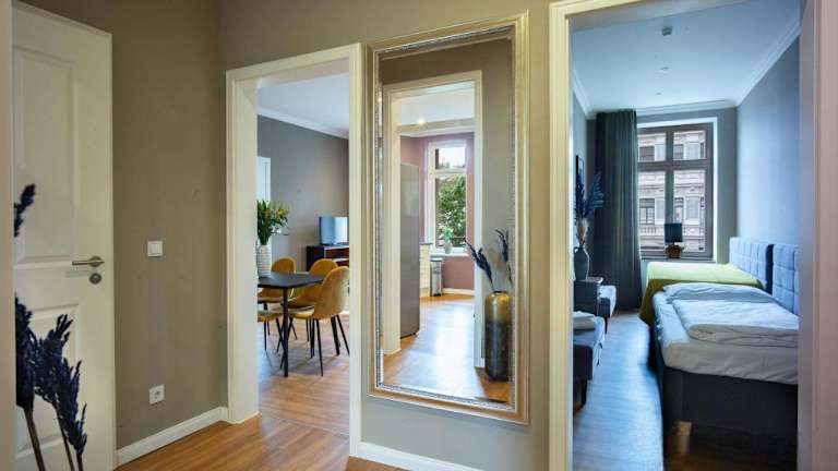 Die Unterkunft Marktblick Apartments nähe der RB-Arena befindet sich 4 km vom Hauptbahnhof Leipzig entfernt. In der Nähe liegt der Flughafen Leipzig/Halle, welcher 14 km entfernt ist. Weitere Sehenswürdigkeiten wie das Panometer Leipzig und die Leipziger Messe sind 6,3 km bzw. 11 km von der Unterkunft entfernt.