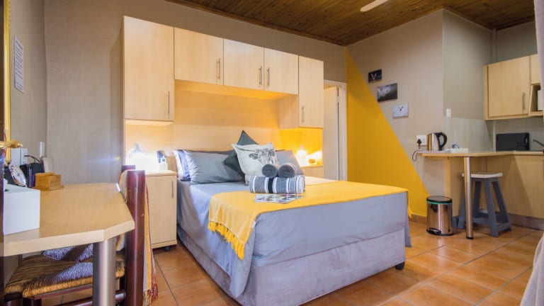 Die Zimmer in der Marle' Lodge sind komfortabel und bieten einen gemütlichen Sitzbereich. Jedes Zimmer verfügt über ein eigenes Bad mit Dusche und kostenlosen Pflegeprodukten sowie einen TV und eine Klimaanlage. Einige Zimmer haben auch eine Terrasse, auf der Sie entspannen können. Ein Kühlschrank ist in allen Zimmern vorhanden, um Ihre Getränke und Snacks kühl zu halten.