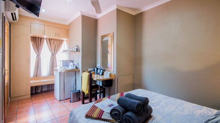Die Marle' Lodge befindet sich in Germiston, nur 16 km vom Johannesburg Stadium entfernt. Die Lage ist ideal für Reisende, die die Stadt erkunden möchten, aber auch eine ruhige Umgebung genießen möchten. In der Nähe gibt es verschiedene Aktivitäten wie Radfahren und den Observatory Golf Club erreichen Sie nach 17 km. Der internationale Flughafen O.R. Tambo ist nur 25 km entfernt.