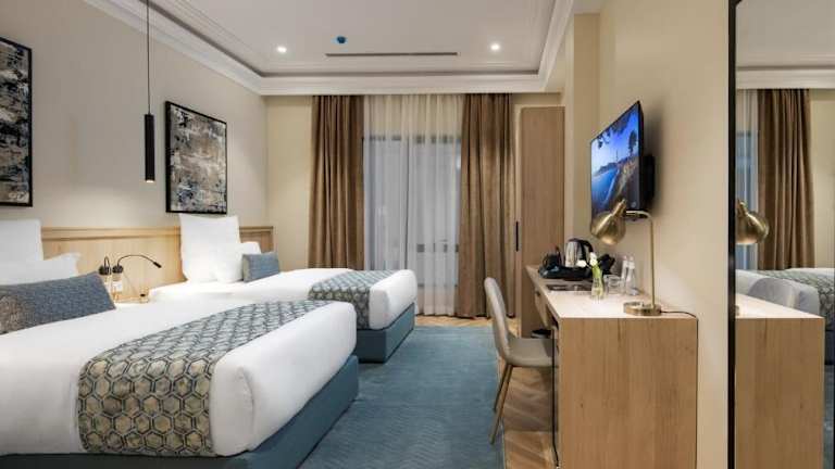 Die Zimmer sind mit einer individuell steuerbaren Klimaanlage ausgestattet und verfügen über Teppichböden sowie verschiedene Bettgrößen. Jedes Zimmer ist mit einem Safe, einem Schreibtisch, einem Kühlschrank, einer Tee-/Kaffeemaschine und einem Fernseher mit Satelliten-/Kabelempfang ausgestattet. Das eigene Badezimmer bietet eine Dusche, Pflegeprodukte und einen Haartrockner. Zudem sind einige Zimmer mit einer Küchenzeile ausgestattet.